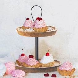Vnesite v svojo pogrinjek eleganco in red. Leseno dvonadstropno stojalo iz mangovega lesa omogoča učinkovito razstavljanje cupcakesov, piškotov, sladic, sadja in slanih kanapejev. Zahvaljujoč dvema ravnema z različnimi premeri preprosto prihranite prostor na mizi, hkrati pa ohranite pregledno predstavitev.
