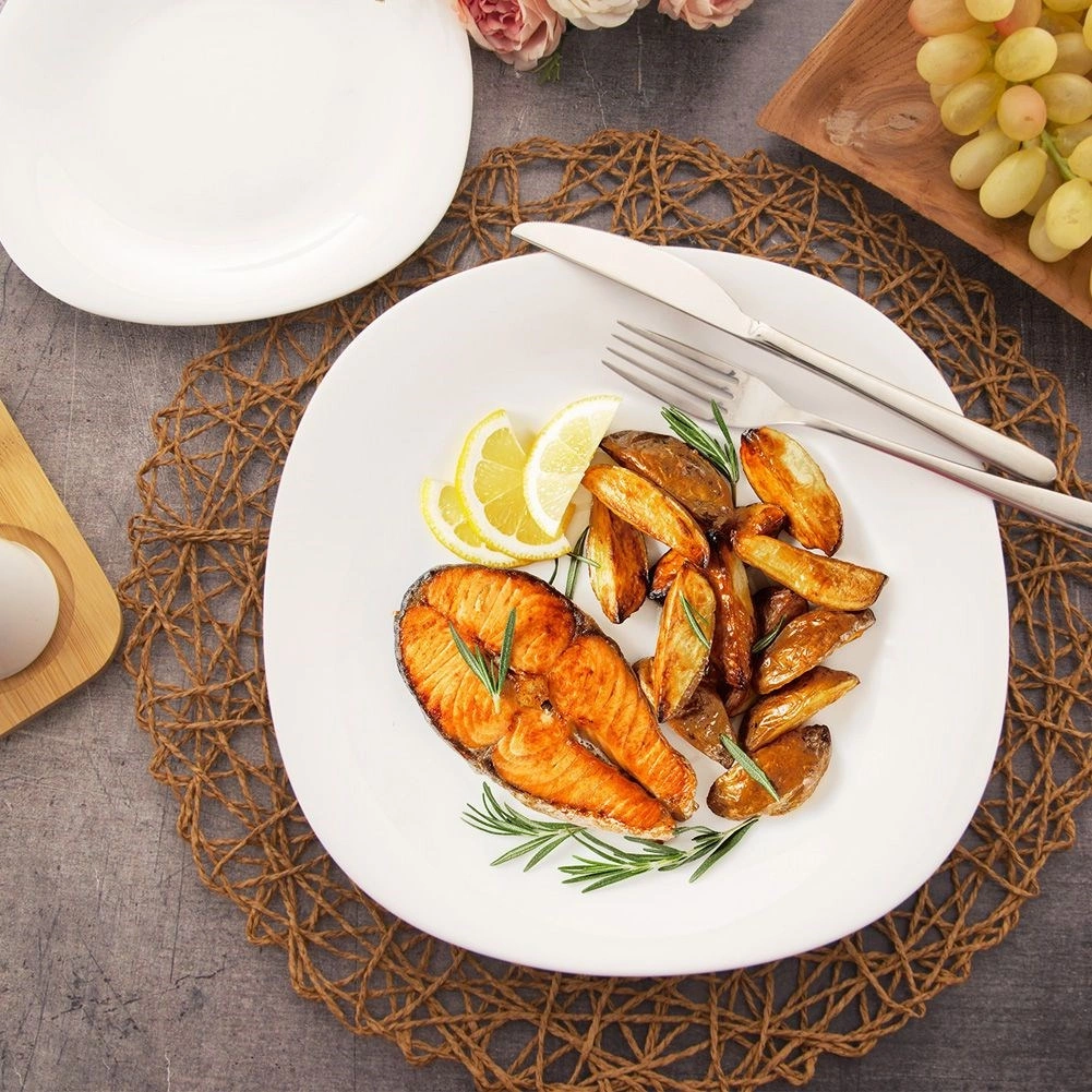 Mera 26,5 × 26,5 cm nudi dovolj prostora za meso, priloge in solate – servirajte estetsko in udobno.