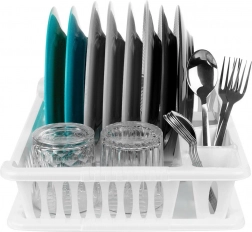Utorčki za krožnike, dva predalčka za pribor ter prostor za skodelice ali kozarce zagotavljajo pregledno sušenje in učinkovito kroženje zraka.