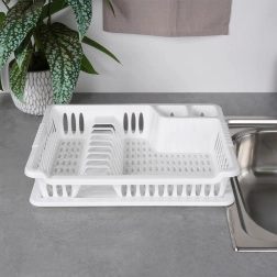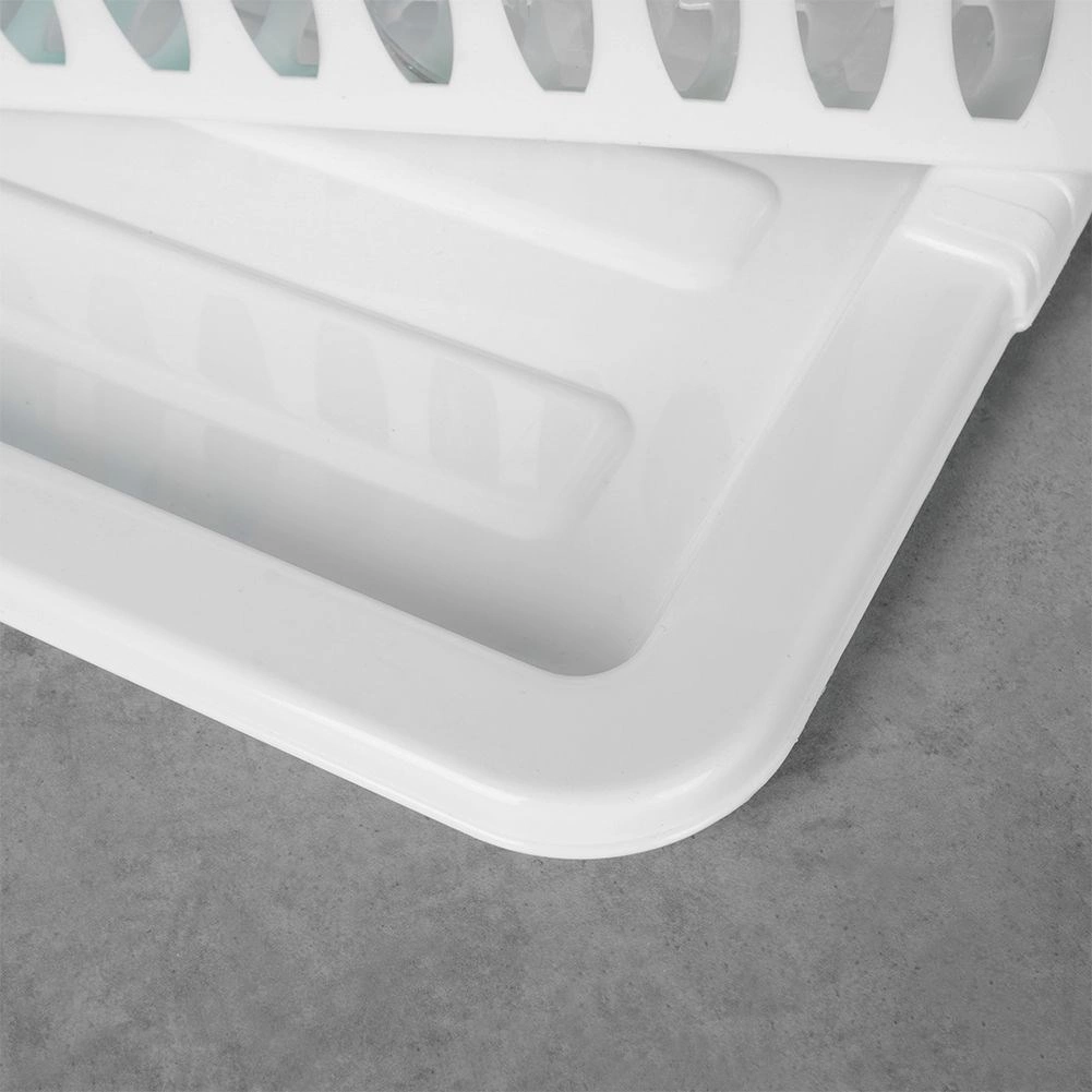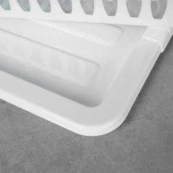 Ohranite kuhinjo urejeno in brez odvečnih kapljic vode. Ta kompaktni odcejalnik ponuja premišljeno razporeditev za krožnike, skodelice in pribor, da vse hitro in higiensko odteče in se posuši. Odstranljiva odcejalna posodica olajša čiščenje ter ohranja delovno površino suho.