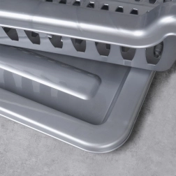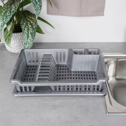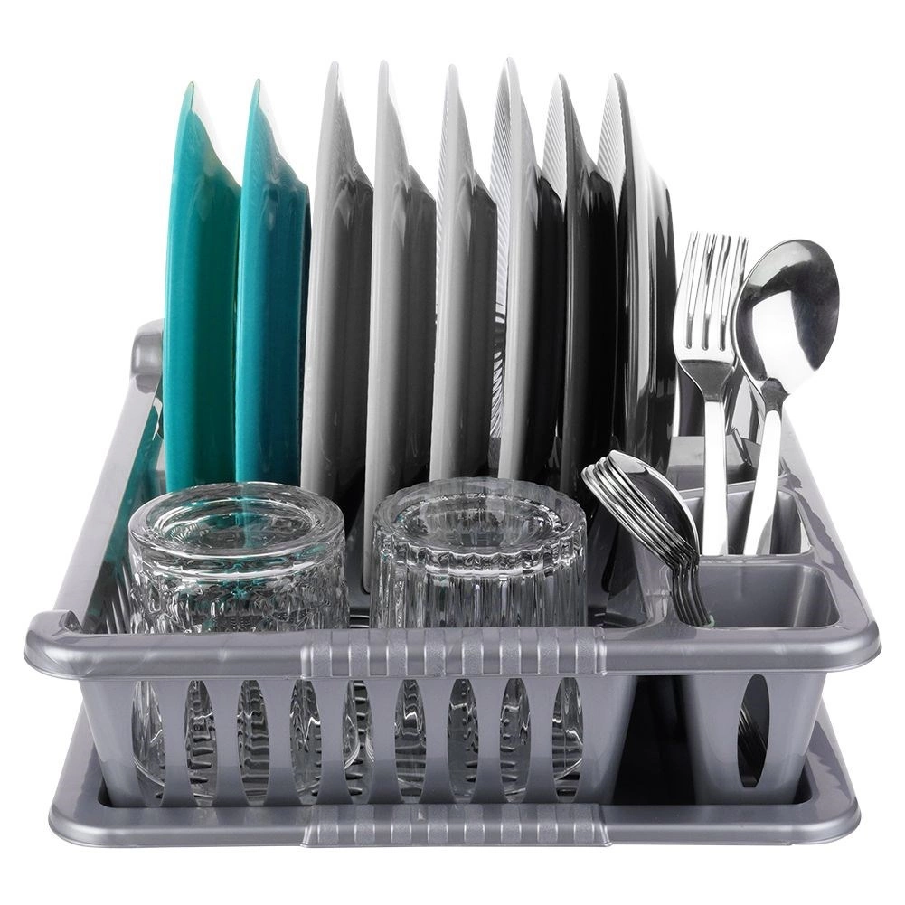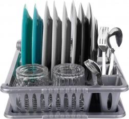 Ohranite red na kuhinjskem pultu in pospešite sušenje posode s kompaktnim odcejalnikom. Zaradi premišljene razporeditve ponuja prostor za 8 krožnikov, prostor za skodelice in sklede ter dva predelka za pribor. Odstranljiv pladenj ujame vodo in zaščiti delovno površino pred kapljicami.