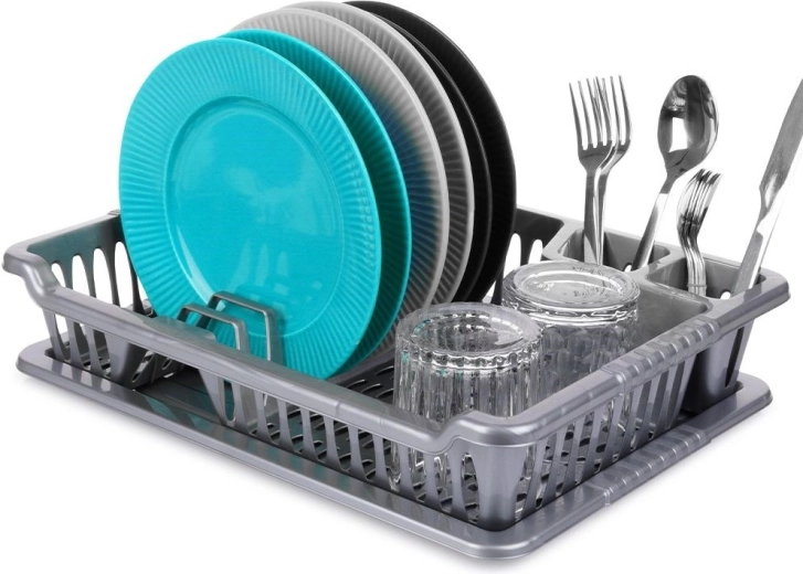 Namenske reže za krožnike, površina za kozarce ter dva predelka za pribor poskrbijo za pregledno sušenje brez nepotrebnega nereda.
