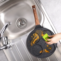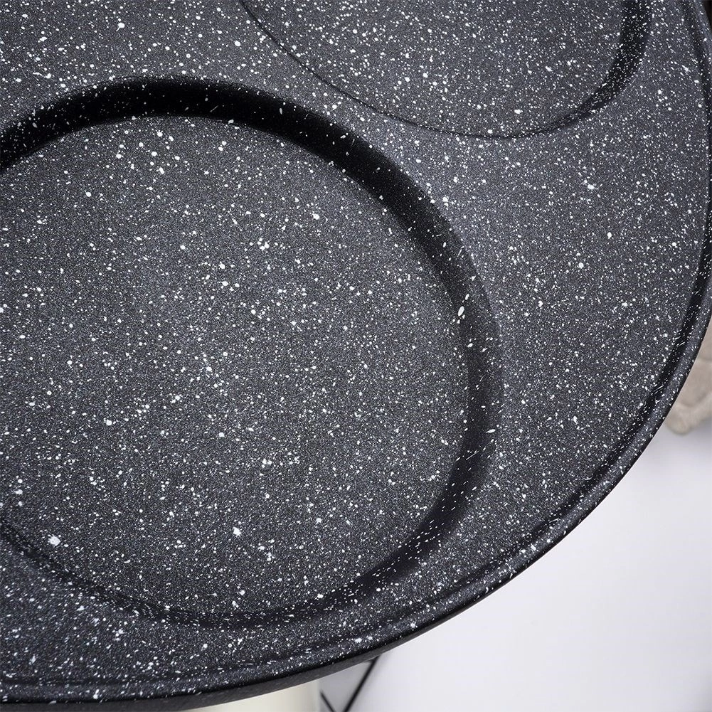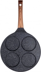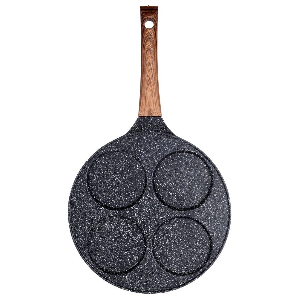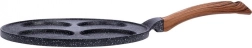Stilska ponev iz linije BLACK&WOOD v priljubljeni kombinaciji črnega kamnitega videza in lesa olajša pripravo jajc, ameriških in mini palačink. Štiri namenske odprtine pomagajo ohraniti idealno obliko in velikost, medtem ko aluminijasto telo z enakomerno porazdelitvijo toplote skrajša čas kuhanja in prihrani energijo.