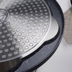 Odporna granitna plast preprečuje prijemanje, omogoča cvrtje z minimalno količino maščobe in znatno olajša čiščenje po kuhanju.
