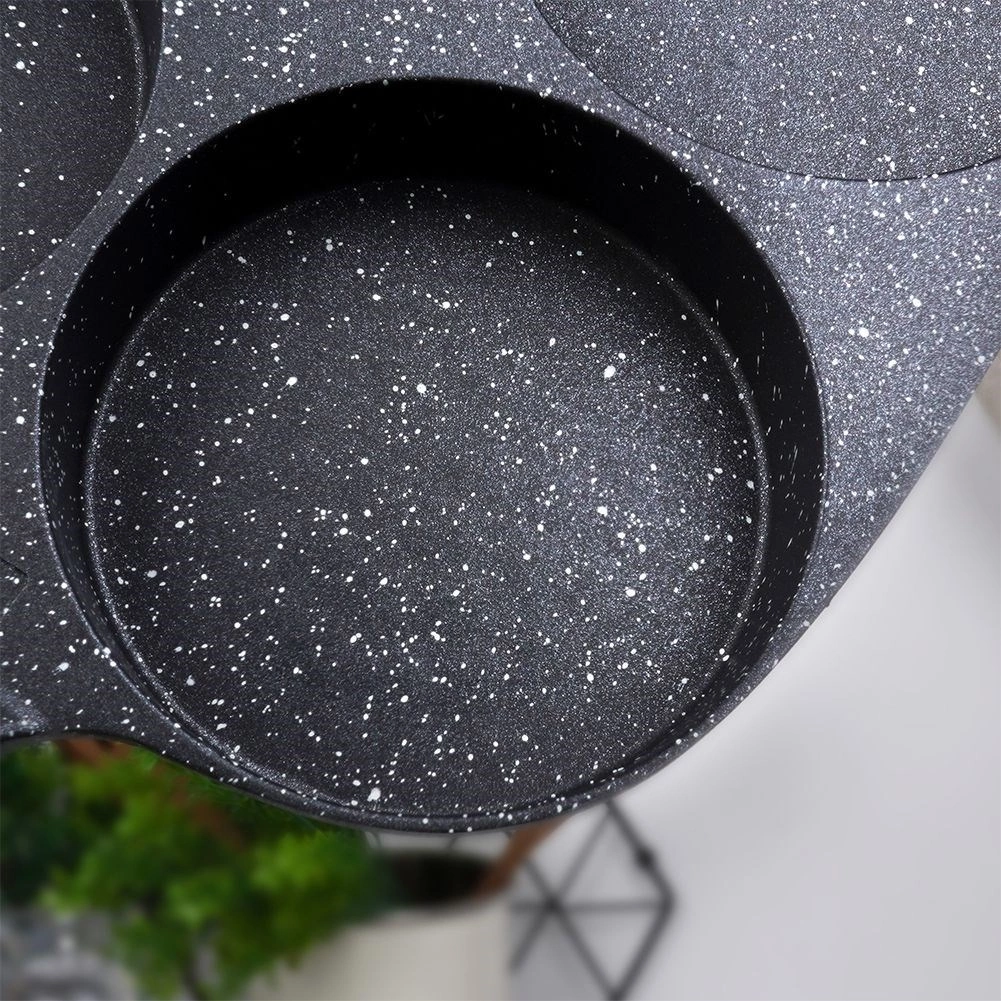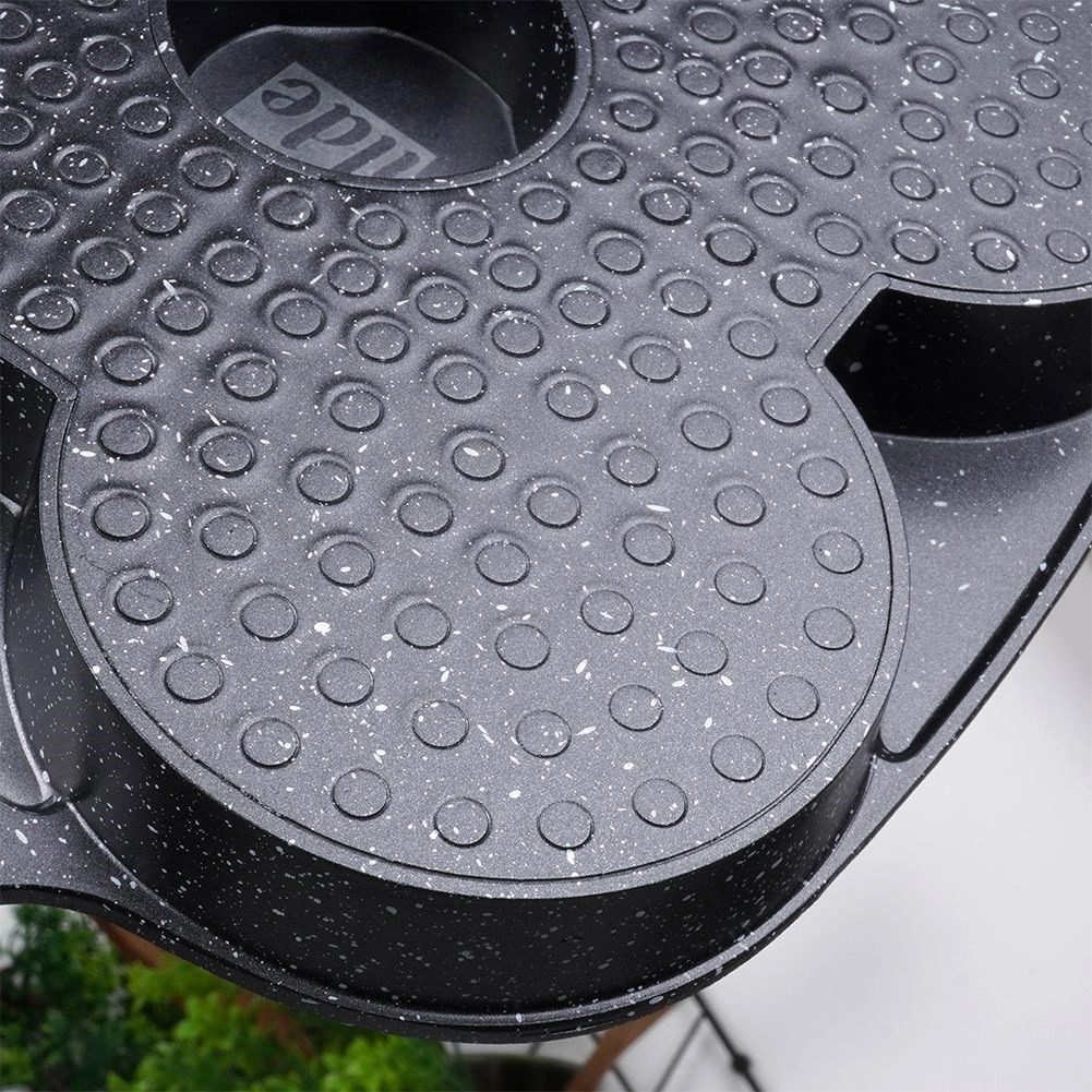 Vnesite v kuhinjo vsakodnevno udobje: granitna ponev BLACK&WOOD z merami 19 × 19 cm ponuja štiri ločene kavitete za popolnoma okrogle porcije. Zlahka pripravite jajca na oko, zajtrkne flancate in male palačinke – hitro, enakomerno in z malo maščobe zahvaljujoč nelepljivemu premazu.
