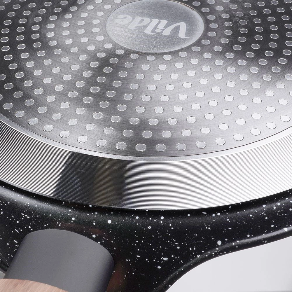 Večslojno dno zagotavlja hitro in enakomerno segrevanje ter je združljivo s plinom, elektriko, keramiko, halogenom in indukcijo.