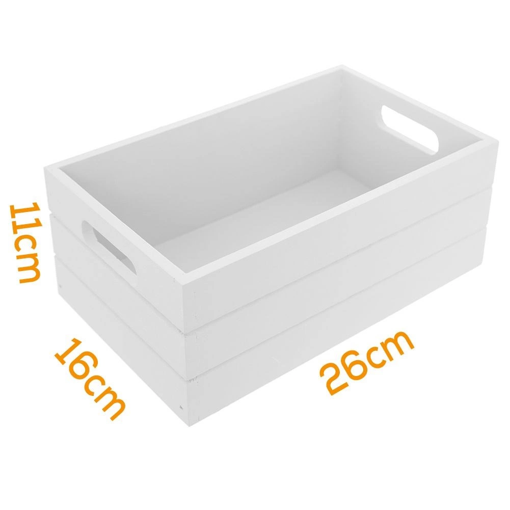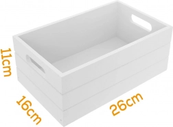 Škatla je izdelana iz trdnega lesa in premazana z belim premazom, ki se ujema z različnimi stili interierja ter hkrati ščiti površino.