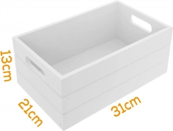 Univerzalna lesena škatla v brezčasni beli barvi pomaga ohranjati red v vsakem prostoru. Izdelana je iz trpežnega lesa, zahvaljujoč ovalnim izrezom na straneh pa jo je enostavno prenašati. Minimalističen videz se poda tako modernim kot tudi klasičnim interierjem.