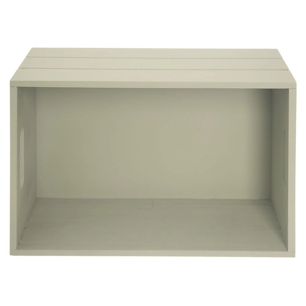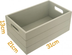 Škatla je izdelana iz trpežnega lesa z letvastimi stranicami, zato prenese knjige, igrače in živila, hkrati pa dobro zrači.