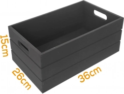Odkrijte praktično rešitev za organizacijo doma. Lesena škatla za shranjevanje z odprtim vrhom in vgrajenimi ročaji nudi hiter dostop do vsebine, enostavno prenašanje in stabilno leseno konstrukcijo z dolgo življenjsko dobo. V minimalističnem črnem dizajnu se poda tako klasičnim kot sodobnim interierjem.