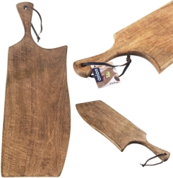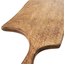 Ta dolga deska iz kakovostnega mangovega lesa je idealna za rezanje mesa, zelenjave in sadja, prav tako pa odlično služi kot servirni pladenj za sire, mesnine ali tapas. Naravni material je trden in oblikovno stabilen ter zaradi svoje strukture manj vpija vonjave.