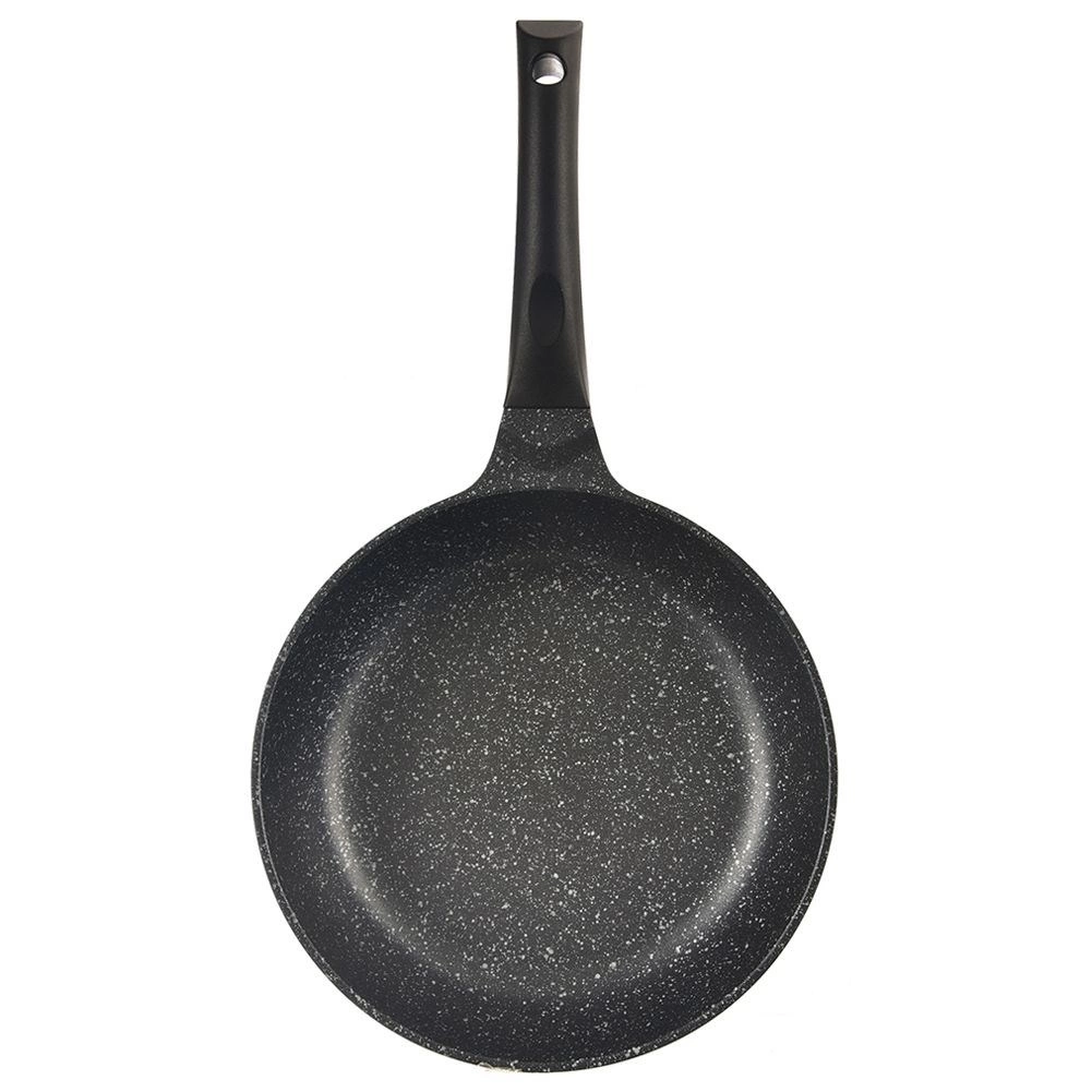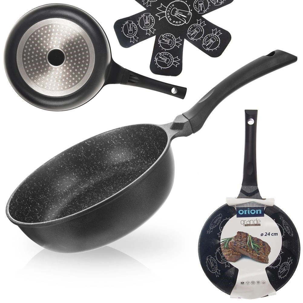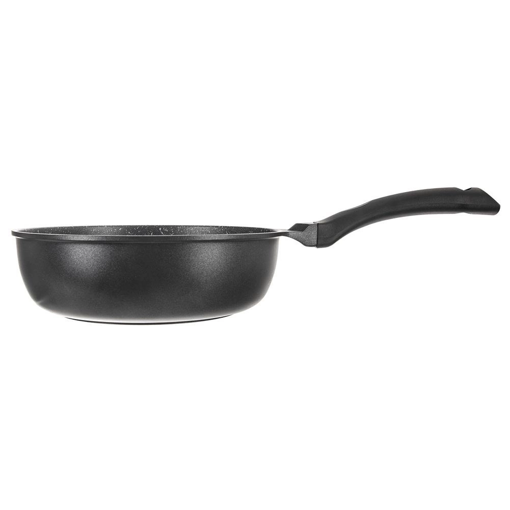 Odkrijte zanesljivo kuhinjsko ponev, ki združuje eleganten videz s praktičnimi funkcijami za vsakodnevno kuhanje. Globoka zasnova omogoča udobno cvrtje mesa in zelenjave, pripravo omak ter preprostih “enolončnic iz ene ponve”. Granitna površinska obdelava Pfluon Granit brez PFOA zagotavlja nelepljivost in enostavno čiščenje, zato lahko kuhate z minimalno količino olja.