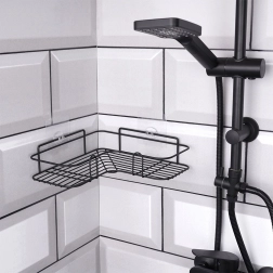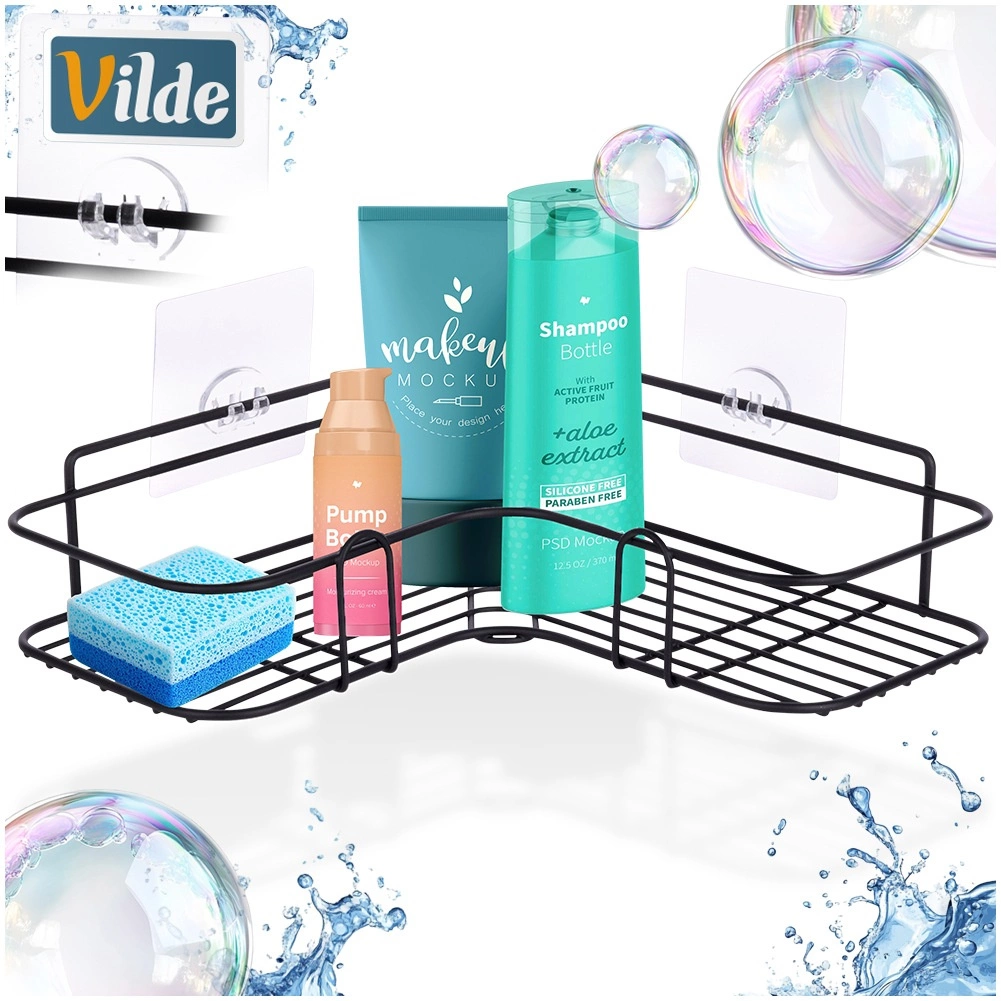 Samolepilna kotna polica za prho je odlična rešitev za vsako kopalnico v modernem loftovskem slogu. Zaradi robustne kovinske konstrukcije z mat črnim prašnim lakom je čvrsta, vzdržljiva in nezahtevna za čiščenje. Primerna je za shranjevanje šamponov, gelov, krtač in gobic, uporabite pa jo lahko tudi v kuhinji kot polico za začimbe. Priložene so prosojne samolepilne podlage za hitro namestitev brez poškodovanja oblog.