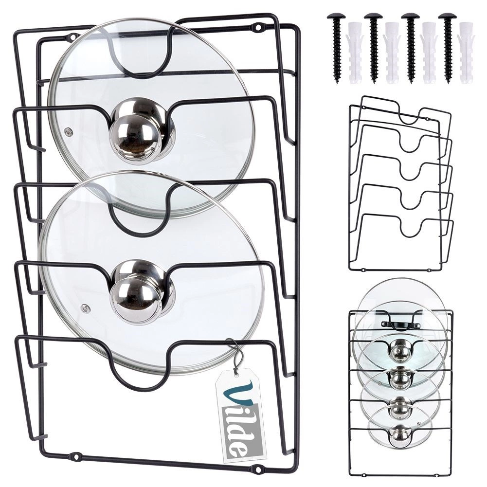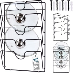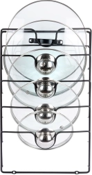 Štiri do pet nivojev za varno shranjevanje pokrovov različnih velikosti – takojšen pregled in red v kuhinji.