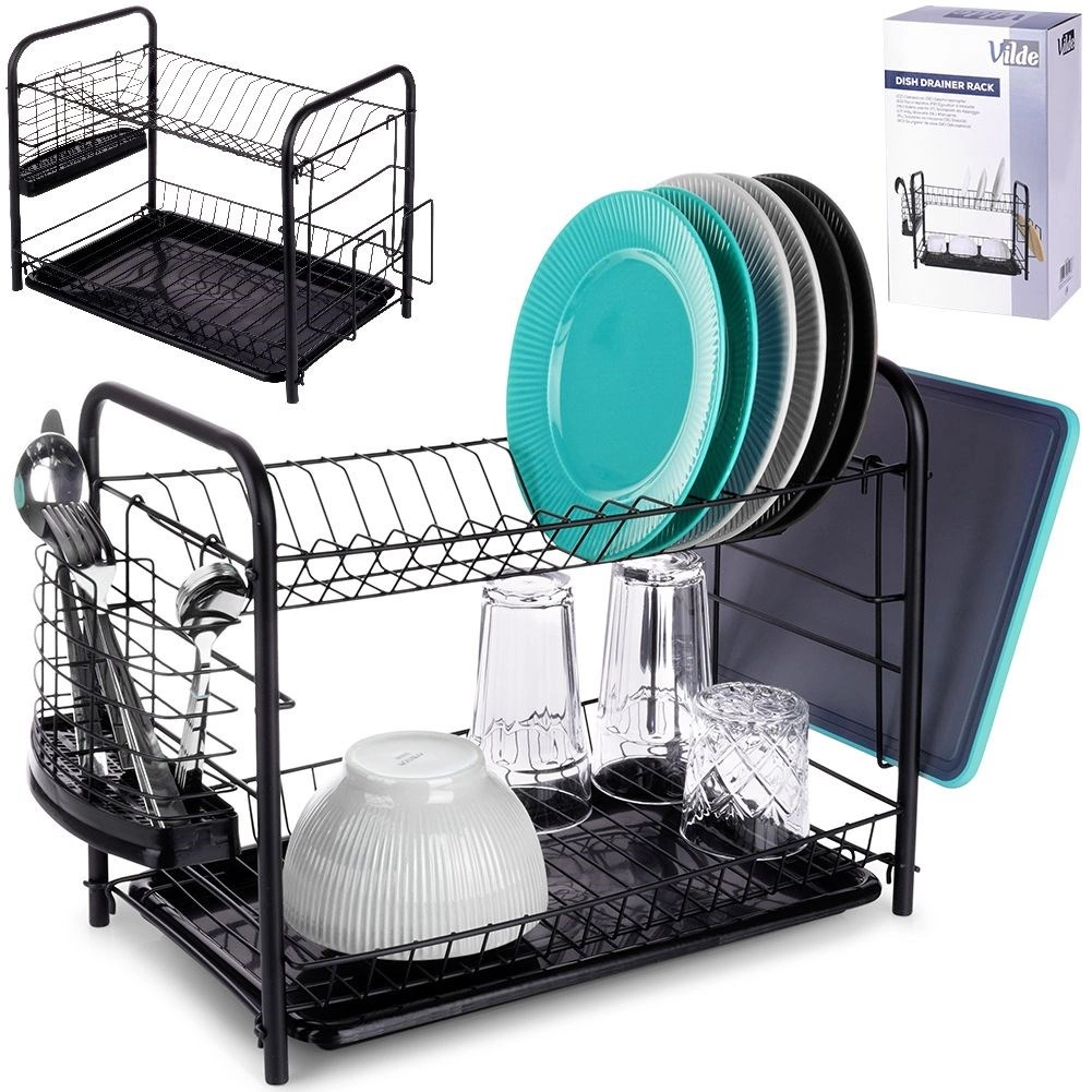 Poskrbite za red okoli pomivalnega korita in sušite posodo učinkovito. Dvonivojski odcejalnik ponuja zgornji del za krožnike (do 16 kosov) in spodnji nivo za sklede, kozarce ali skodelice. Odstranljiv odcejalni pladenj poenostavi čiščenje in ščiti delovno površino pred vodo.