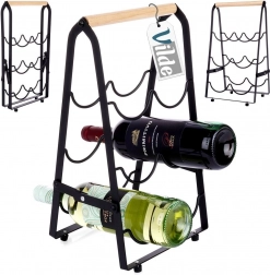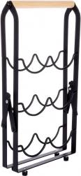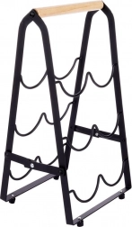 Robusten A-okvir z valovitimi nosilci trdno fiksira steklenice in jih ščiti pred kotaljenjem. Protidrseče in zaščitne nogice zagotavljajo stabilnost in ščitijo površine. Stojalo je kompaktno, pregledno in pomaga, da imate najljubše steklenice vedno pri roki – od vin do drugih žganih pijač.