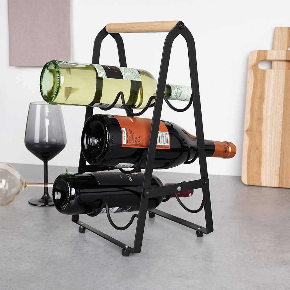 To dizajnersko stojalo za vino v loft slogu združuje mat črno kovino z naravnim lesom, zato se odlično poda k modernim interierjem. Z ležečim shranjevanjem steklenic podpira pravilno skladiščenje – plutovine ostanejo vlažne in vino ohrani svojo kakovost. Zahvaljujoč praktičnemu ročaju ga zlahka prenesete in postavite na kuhinjski pult, komodo ali barski pult.