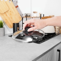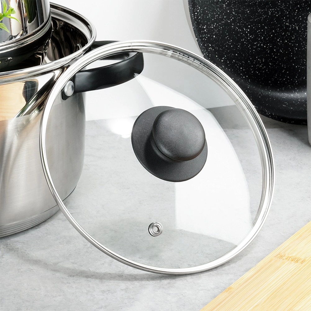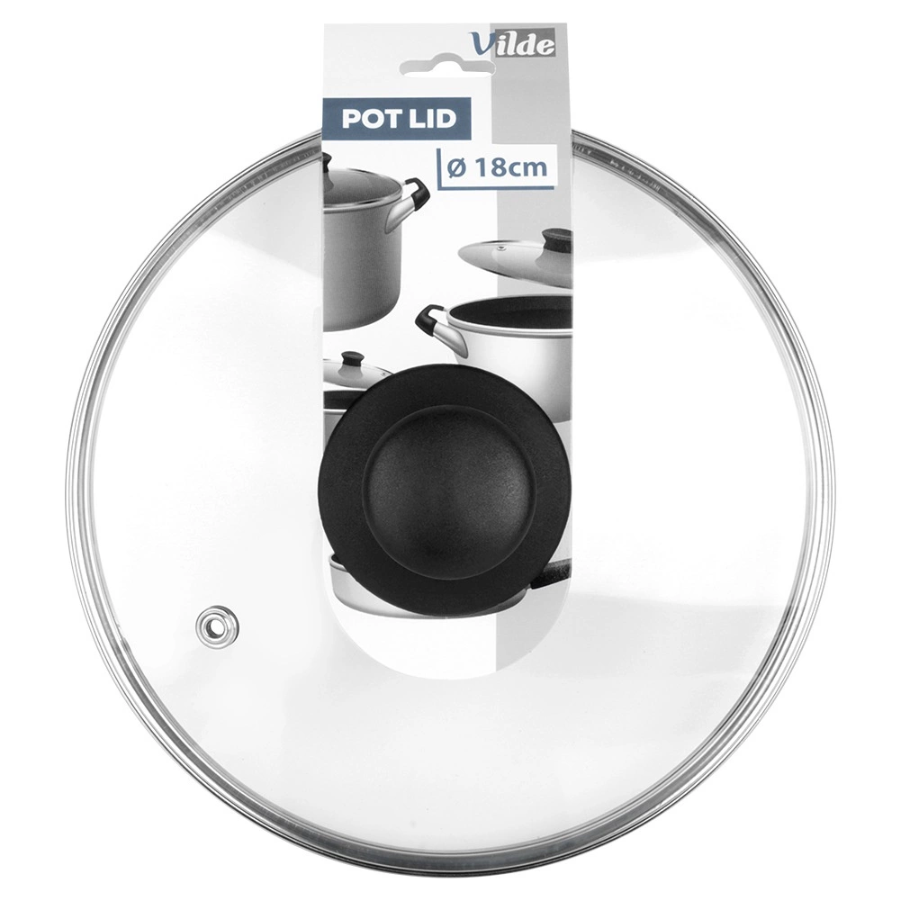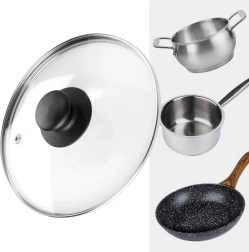 Stekleni pokrov 18 cm je praktičen dodatek za lonce, ponve in kozice enakega premera. Izdelan je iz toplotno odpornega, prozornega stekla z nerjavnim robom ter vzdržljivim plastičnim gumbom v črni barvi. Prozorna zasnova omogoča nadzor kuhanja brez dvigovanja pokrova, s čimer prihranite energijo in čas.