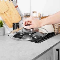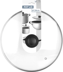 Praktičen pokrov iz toplotno odpornega, prozornega stekla je idealen za lonce, ponve in kozice s premerom 28 cm. Trpežen nerjavni rob povečuje življenjsko dobo, medtem ko ergonomski ročaj iz odpornega materiala olajša rokovanje. Zaradi prosojnosti imate popoln nadzor nad kuhanjem brez nepotrebnih toplotnih izgub.