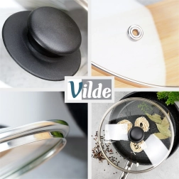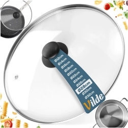 Pokrov pospeši kuhanje in pečenje, zmanjšuje pršenje vode in maščobe ter pomaga, da jedi ostanejo dlje časa tople. Vgrajeni parni ventil preprečuje prekomerno kondenzacijo in nežno sprošča tlak, rahlo izbočena oblika pa podpira kroženje vročega zraka za enakomerno toplotno obdelavo.