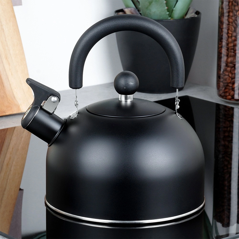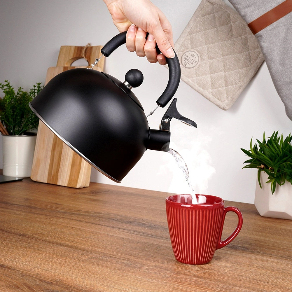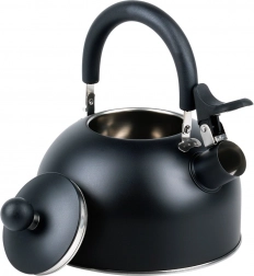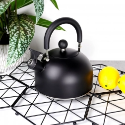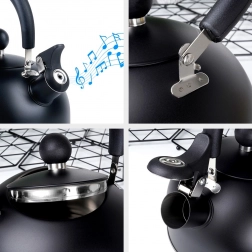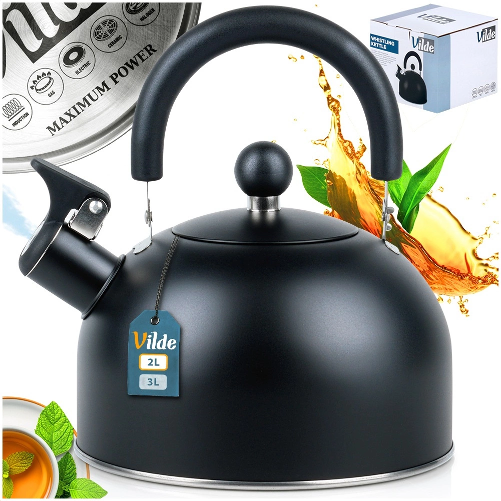 Slogoven čajnik iz nerjavečega jekla v mat črni barvi bo postal praktičen in dekorativen dodatek vaši kuhinji. Zahvaljujoč akutermičnemu dnu se voda hitro segreje tudi pri nizki moči, kar prihrani energijo in čas. Piščalka zanesljivo opozori na vrelišče, zložljiv, toplotno odporen ročaj pa zagotavlja varno in udobno nalivanje.