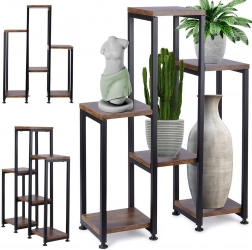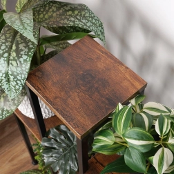 Robusten kovinski okvir v črni barvi in kakovostne MDF plošče v temnem lesnem dekorju tvorijo odporno in stabilno konstrukcijo. Stojalo je primerno za žive in umetne rastline, prilega se modernim in industrijskim interierjem, z enostavnim vzdrževanjem pa bo vedno videti odlično.
