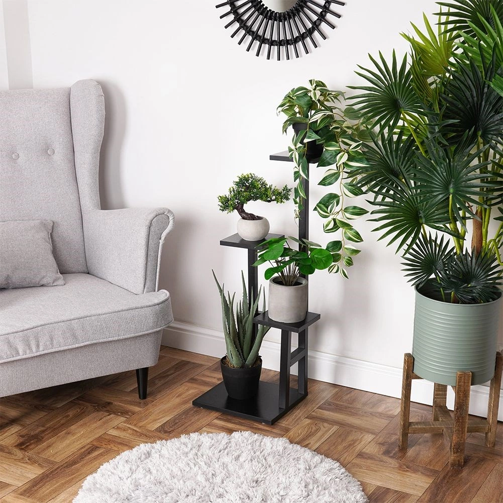 Večnivojska razstavitev na štirih različnih višinah ustvari privlačne kompozicije zelenja in dekoracij, pri čemer minimalno obremenjuje talno površino. Stojalo je idealno za žive in umetne rastline, njegov sodoben loftovski dizajn pa doda interierju poseben značaj.