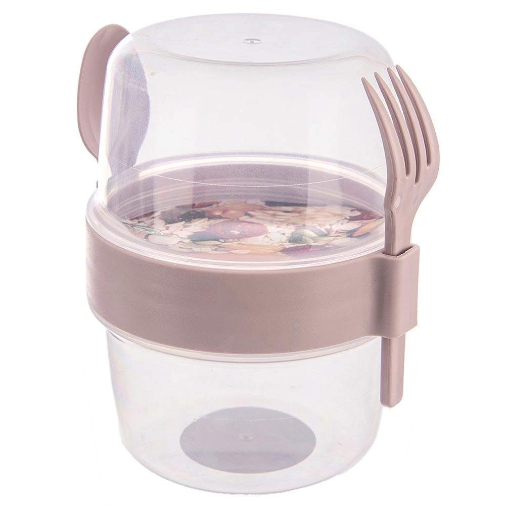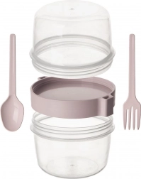 Uživajte v svežem jogurtu z najljubšimi dodatki kadarkoli in kjerkoli. Dvonivojski lonček loči jogurt od mueslijev, sadja ali oreščkov, da ostanejo hrustljavi do zadnjega grižljaja. Prozorne stene omogočajo enostaven pregled vsebine brez odpiranja.