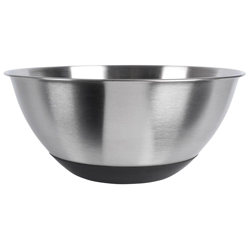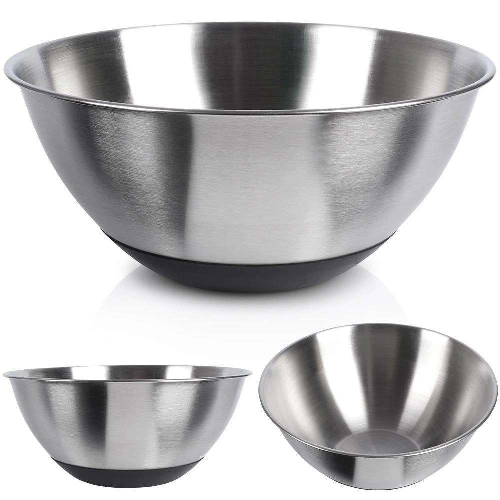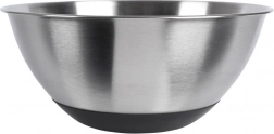 Ta kuhinjska skleda iz nerjavečega jekla z mat površino je zanesljiv pomočnik za vsakodnevno kuhanje in peko. Nedrseča gumijasta osnova drži skledo trdno na mestu pri mešanju in stepanju, medtem ko širok rob olajša prelivanje in rokovanje. Eleganten, klasičen videz omogoča tudi neposredno serviranje solat, omak ali sadja na mizo.