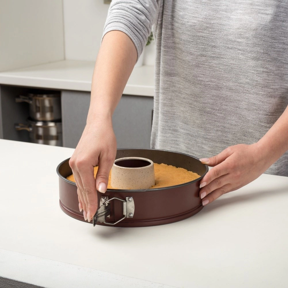 Uporabljali ga boste za rahle biskvite, bábke, cheesecake in hladne deserte. Material iz visokokakovostnega jekla enakomerno razporeja toploto in je odporen na temperature do 230 °C. Površina brez PFOA in PTFE je varna in enostavna za čiščenje.