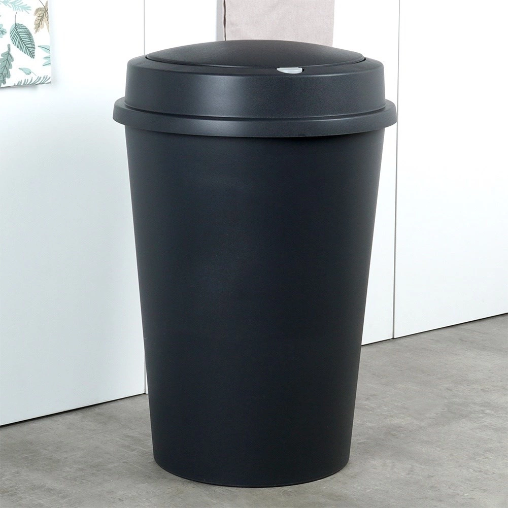 Ta črn koš za odpadke s prostornino 47 litrov je zasnovan za vsakodnevno udobje in čistost. Ima dvofazni pokrov za hitro odlaganje odpadkov z nagibom ter samodejno odpiranje z gumbom, ki pomaga zmanjšati širjenje vonjav. S svojim brezčasnim videzom se odlično poda tako v moderne kot klasične interierje.