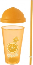 Uživajte svoje najljubše hladne napitke v stilu – ta plastični lonček z zamaškom in slamico prinaša svež citrusni dizajn in udobje pri pitju. Zahvaljujoč privijačnemu zamašku se v pijačo ne bodo prikradle nečistoče ali žuželke, večkrat uporabna slama pa ostane varno na mestu.
