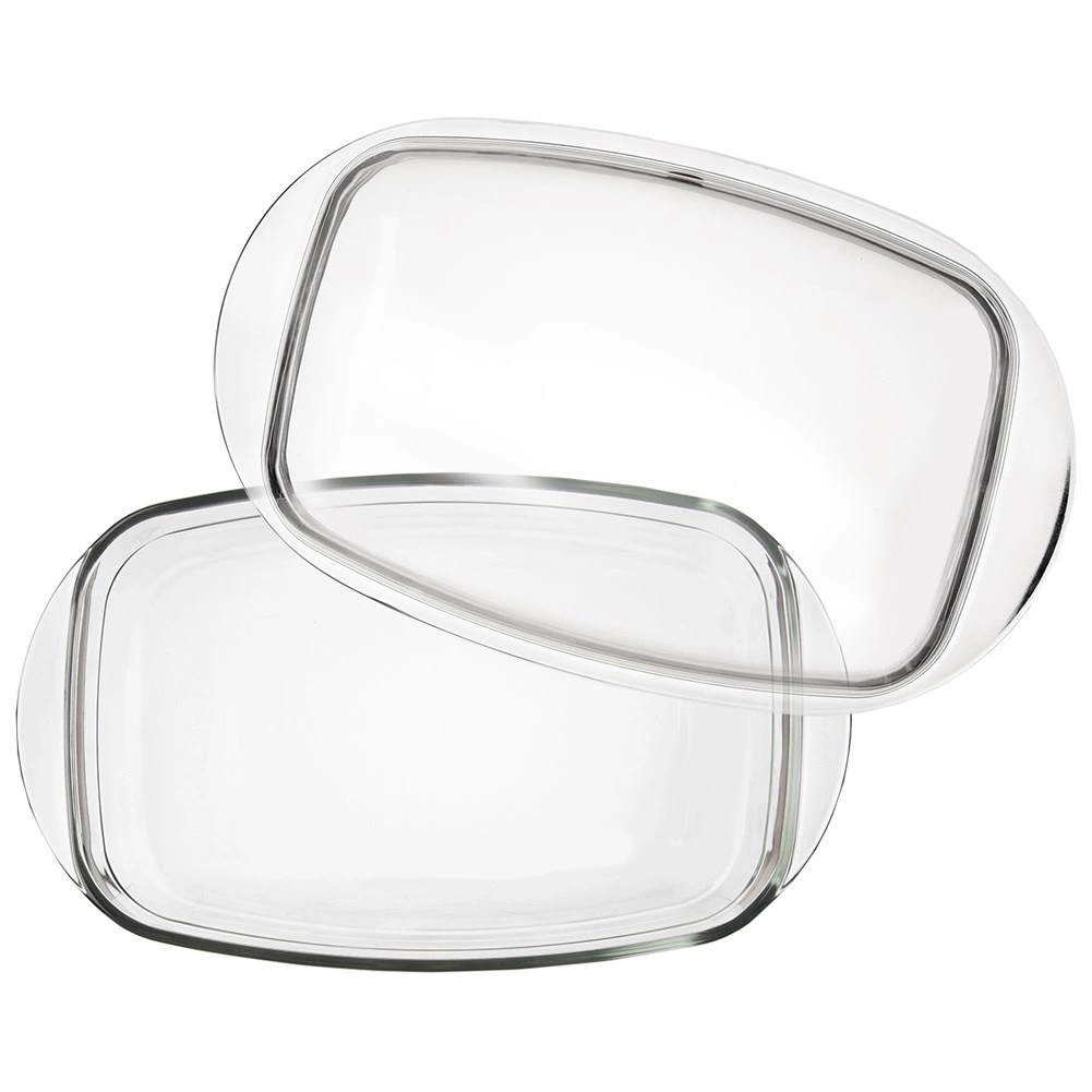 Praktična steklena posoda s pokrovom je idealna za peko mesa, lazanij, krompirja, zelenjave in sladkih narastkov. Prosojno steklo omogoča nadzor peke, pokrov ohranja vlago in sočnost jedi, po odstranitvi pa dobite dve samostojni posodi za peko ali serviranje neposredno na mizi.