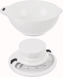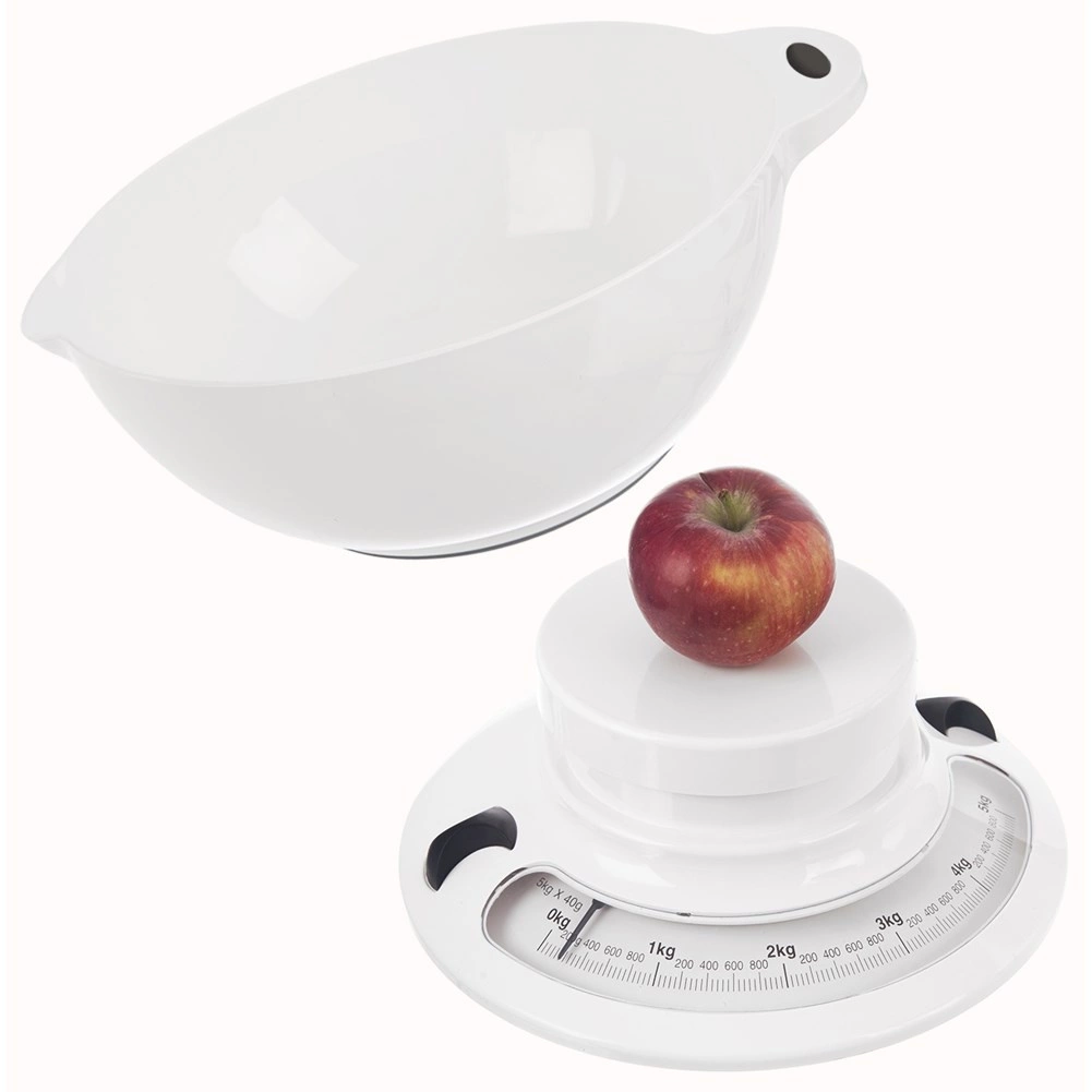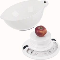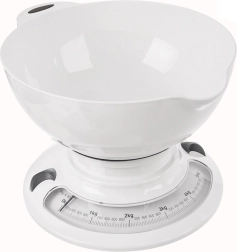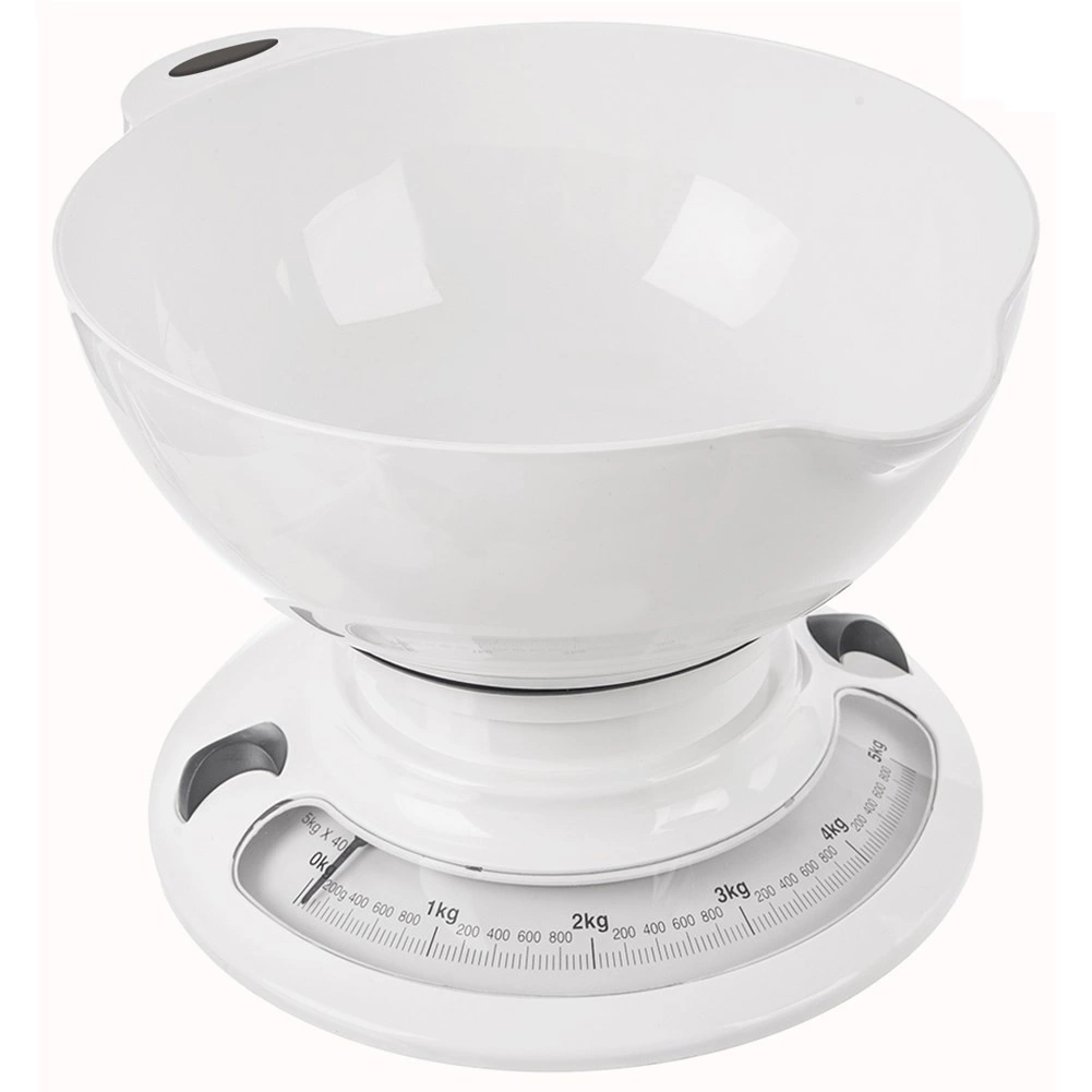 Praktična mehanska kuhinjska tehtnica z odstranljivo posodo in nosilnostjo 5 kg za natančno tehtanje sestavin. Ponuja berljivo analogno merjenje v g/kg in lbs/oz, ničljenje/taro, stabilno osnovo s proti zdrsu ter posodo s prostornino 2,6 l s praktičnim nalivnim izlivom. Brez potrebe po baterijah – zanesljiv in okolju prijazen pomočnik za vsako kuhinjo.