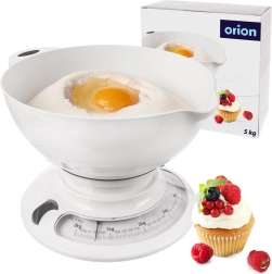 Ta mehanska tehtnica ORION združuje klasičen dizajn z visoko funkcionalnostjo. Odstranljiva plastična posoda v beli barvi ima prostornino 2,6 l in olajša tehtanje ter prelivanje zahvaljujoč praktičnemu izlivu. Pregleden številčnik z merilno lestvico do 5 kg prikazuje vrednosti v gramih/kilogramih in funtih/unčah, zato je primerna za slovenske in tuje recepte.