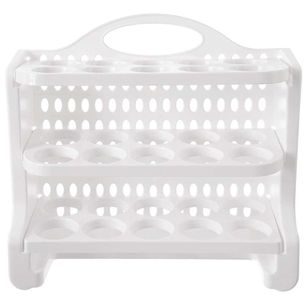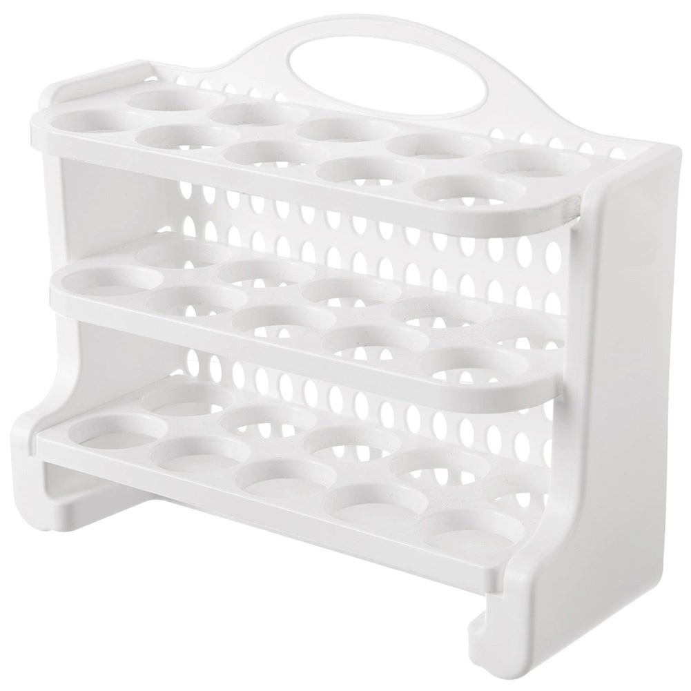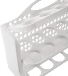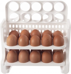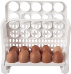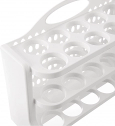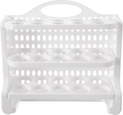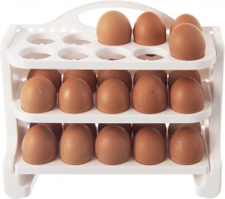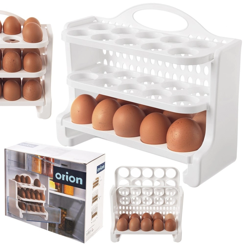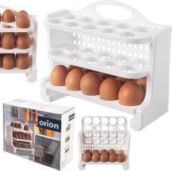 Ohranite hladilnik brezhibno organiziran. Tristanovno stojalo za jajca ORION s kapaciteto 30 kosov je izdelano iz kakovostne, za zdravje neškodljive plastike v beli barvi. Vsak nivo ima določene položaje za jajca, ki preprečujejo njihovo kotaljenje in zmanjšujejo tveganje poškodb. Zaradi kompaktnih mer 28 × 10 × 22,5 cm se zlahka prilega na polico in v vrata hladilnika (predhodno preverite združljivost z vašim modelom).