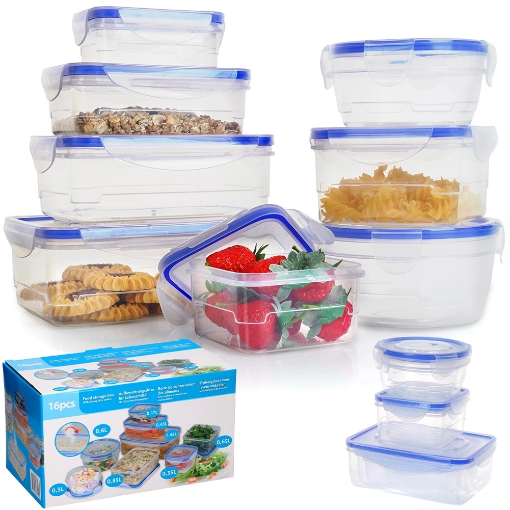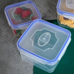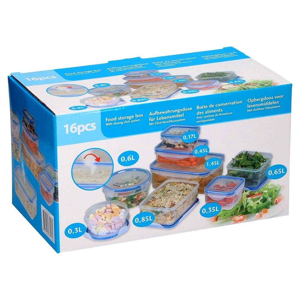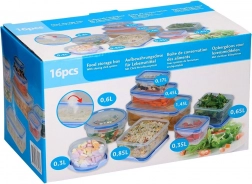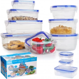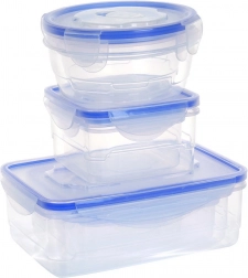 Pokrovi s štirimi zapiralnimi sponkami zagotavljajo 100% zaščito pred iztekanjem, zato so posode primerne za na pot, v službo in šolo. Posode so zložljive in vstavne, s čimer prihranite prostor v omarici, hladilniku in zamrzovalniku. Primerne za pomivalni stroj in mikrovalovno pečico (pokrov z odzračevalnim ventilom).