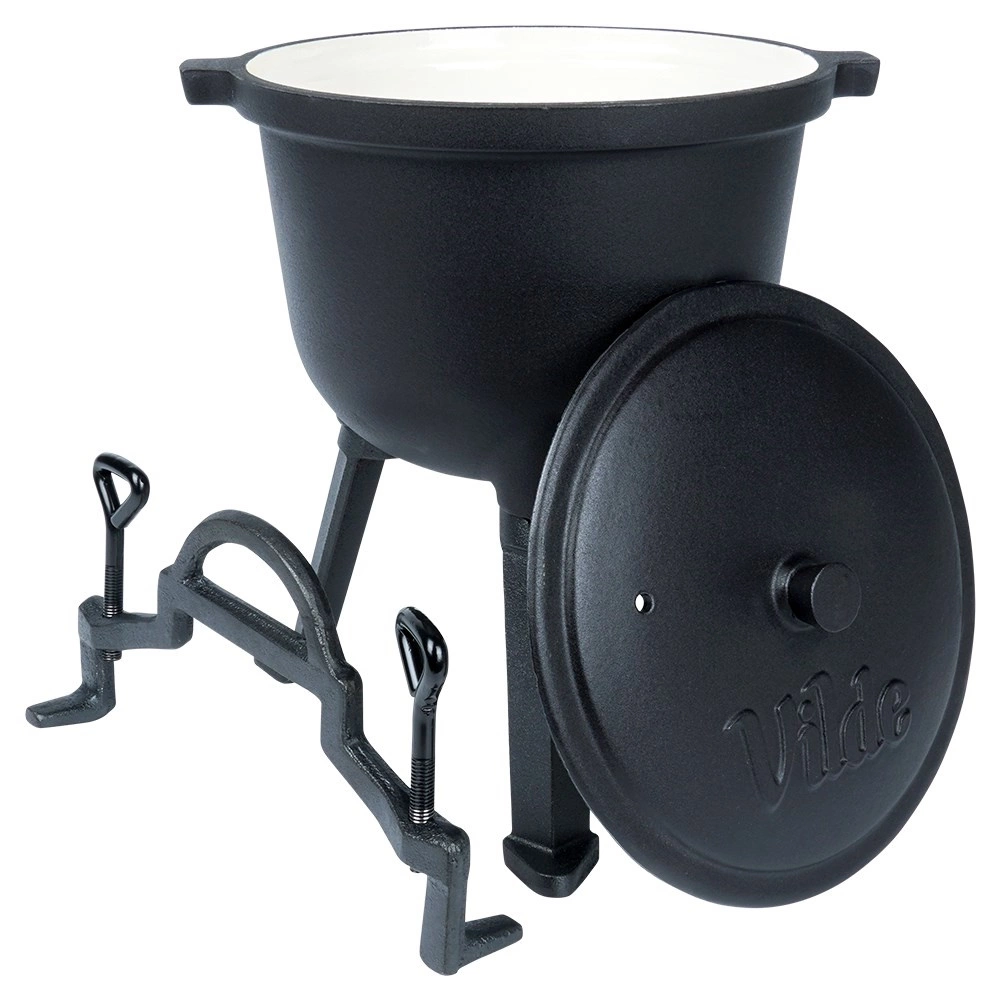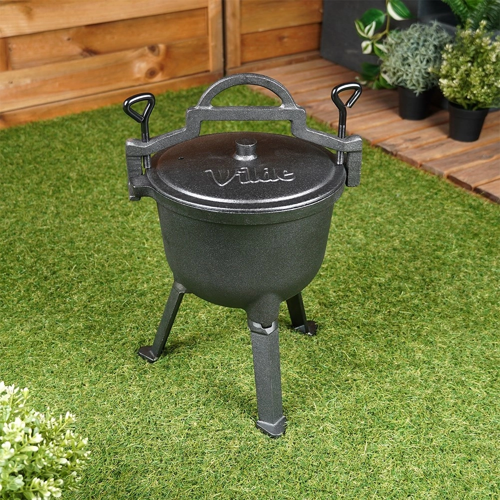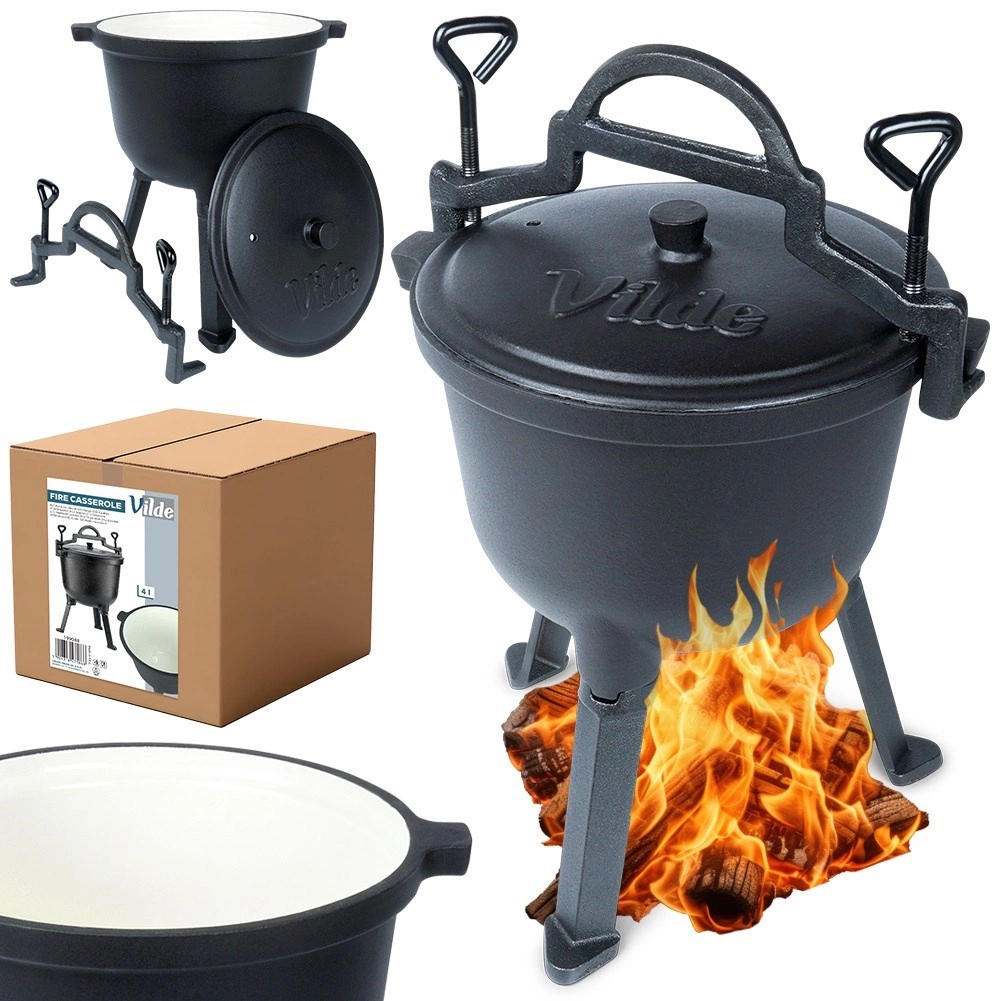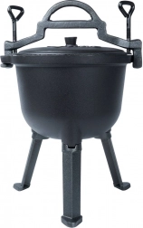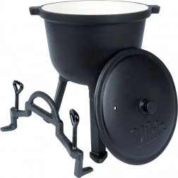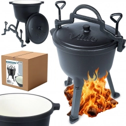 Ta vzdržljiv kotliček iz črnega litoželeza z bež emajliranim notranjim delom odlično zadržuje in enakomerno prenaša toploto, zato so jedi hitreje gotove ter ostanejo sočne in aromatične. Zahvaljujoč trem stabilnim nogicam je varen za uporabo nad ognjiščem ali žarečim ogljem. Primeren za kuhanje, pečenje, dušenje in cvrtje v naravi.