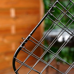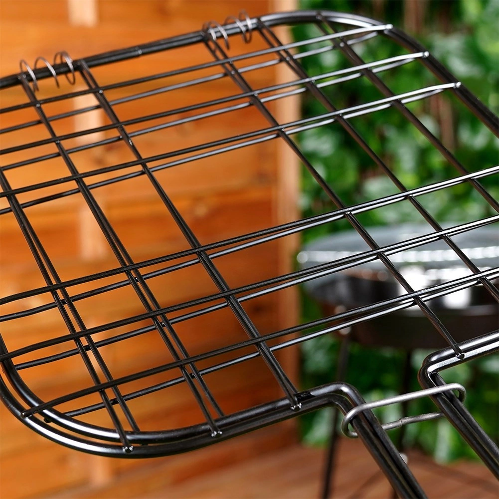 Košara je univerzalna – primerna za burgerje, steake, ribe in zelenjavo. Konstrukcija hinged clamshell s trdno zaponko drži živila na mestu in omogoča enostaven obrat celotne površine naenkrat, tako da dosežete enakomerno prepečenost in lepe mrežaste sledi.