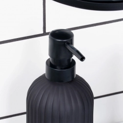 Stilski dozirnik za tekoče milo ali sredstvo za pomivanje posode je izdelan iz kakovostnega stekla v mat črni barvi. Rebrasto ohišje ne le odlično izgleda, temveč zagotavlja tudi nedrseč oprijem. Zaradi prostornine 400 ml je idealen za vsakodnevno uporabo.