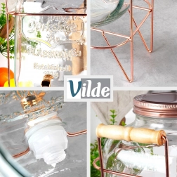 Širok vrat omogoča enostavno vstavljanje rezin citrusov, zelišč in kock ledu. Zaradi prozornega stekla imate vedno pregled nad vsebino in količino. Dozirnik ni primeren za vroče pijače, namenjen je postrežbi hladnih in ohlajenih napitkov. Originalen izdelek znamke VILDE, izdelan v skladu z evropskimi standardi.