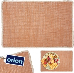 Praktična in dekorativna podloga pod krožnik bo vaši mizi dodala eleganten videz in jo hkrati zanesljivo zaščitila. Zaradi pravokotne oblike se odlično prilega običajnim krožnikom in namiznemu posodju. Oranžna površina z naravno bež obrobo poudari domačno toplino in lepo dopolni interierje v boho slogu.