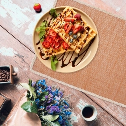 Podloga je izdelana iz trpežnega poliestrskega vlakna, zato je čvrsta, odporna in enostavna za vzdrževanje – nečistoče preprosto obrišete z vlažno krpo. Uporabite jo lahko ne le pod krožnike in skodelice, temveč tudi kot zaščitno podlogo pod vaze ali druge dekoracije, da preprečite praske in madeže na površini mize.