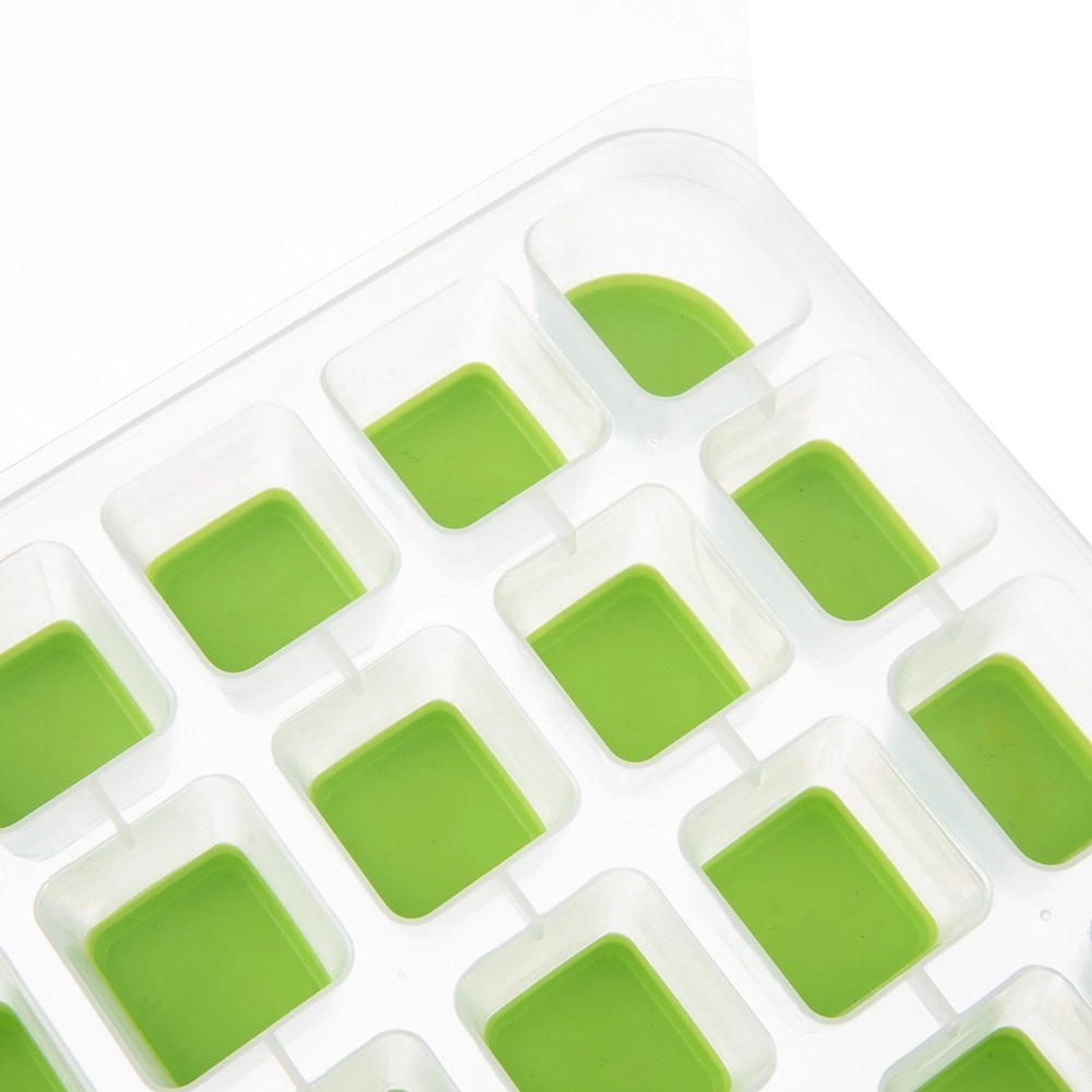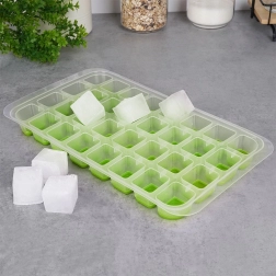Ta robusten model združuje prosojno ohišje in silikonsko dno v zelenih odtenkih za udobno odstranjevanje brez lomljenja kock. Zahvaljujoč dimenzijam 32,5 × 18 × 3 cm boste naenkrat pripravili veliko količino ledu – idealno za domače zabave, koktajle in vsakodnevno osvežitev pijač.