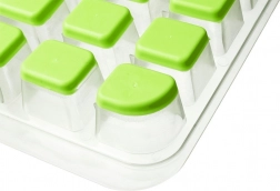 Mreža z 32 kvadratnimi prekati ustvari enotne kocke velikosti približno 3,5 × 3 cm – idealne za vodo, limonade in koktajle.