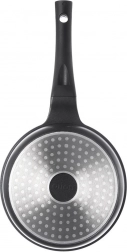 Praktična zasnova z ergonomskim ročajem zagotavlja varen oprijem in udobno rokovanje. Ponev je združljiva s plinskimi, električnimi, steklokeramičnimi, halogenskimi in indukcijskimi kuhalnimi ploščami in po kuhanju jo preprosto vstavite v pomivalni stroj.