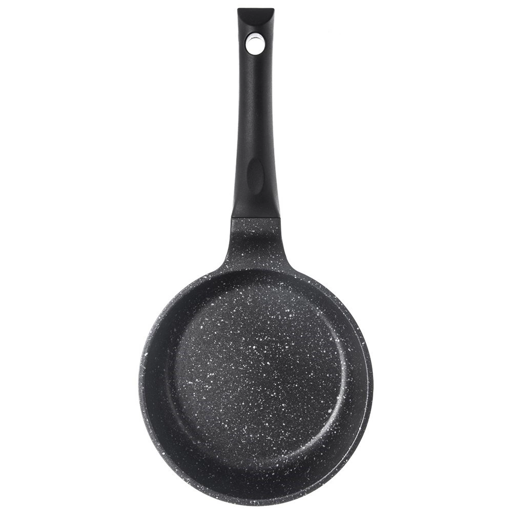 Ta trpežna ponev iz aluminijastega ulitka združuje hiter prenos toplote s kakovostno neprijemljivo granitno plastjo Pfluon Granit brez PFOA in PTFE. Odlična je za pripravo jajc, mesa, zelenjave in malih palačink – idealna velikost za hiter zajtrk ali porcijo za eno osebo.