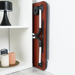 Vgrajen kanal varno drži tablico ali telefon pod idealnim kotom. Prehod za kable omogoča udobno polnjenje brez navlake žic.
