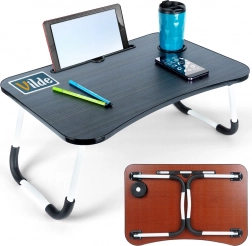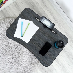 Zložljiva lapdesk mizica je idealna za delo s prenosnikom ali tablico, branje knjig in gledanje filmov v postelji ali na kavču. Trpežna plošča iz MDF s prijetno površino ter kovinske noge z gumijastimi zaključki zagotavljajo stabilnost in ščitijo površine pred praskami.