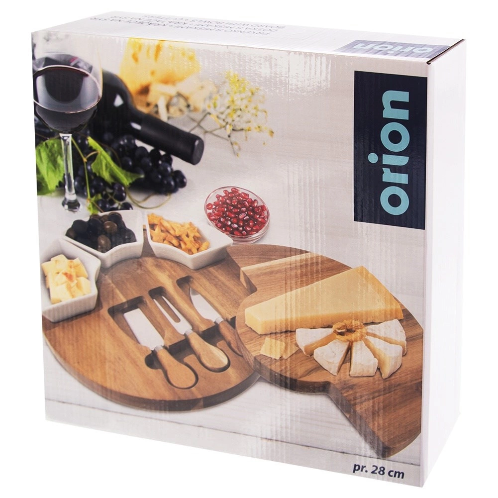 Komplet vsebuje nožek, lopatico in vilico iz nerjavnega jekla z akacijevimi ročaji – idealno za različne vrste sirov.